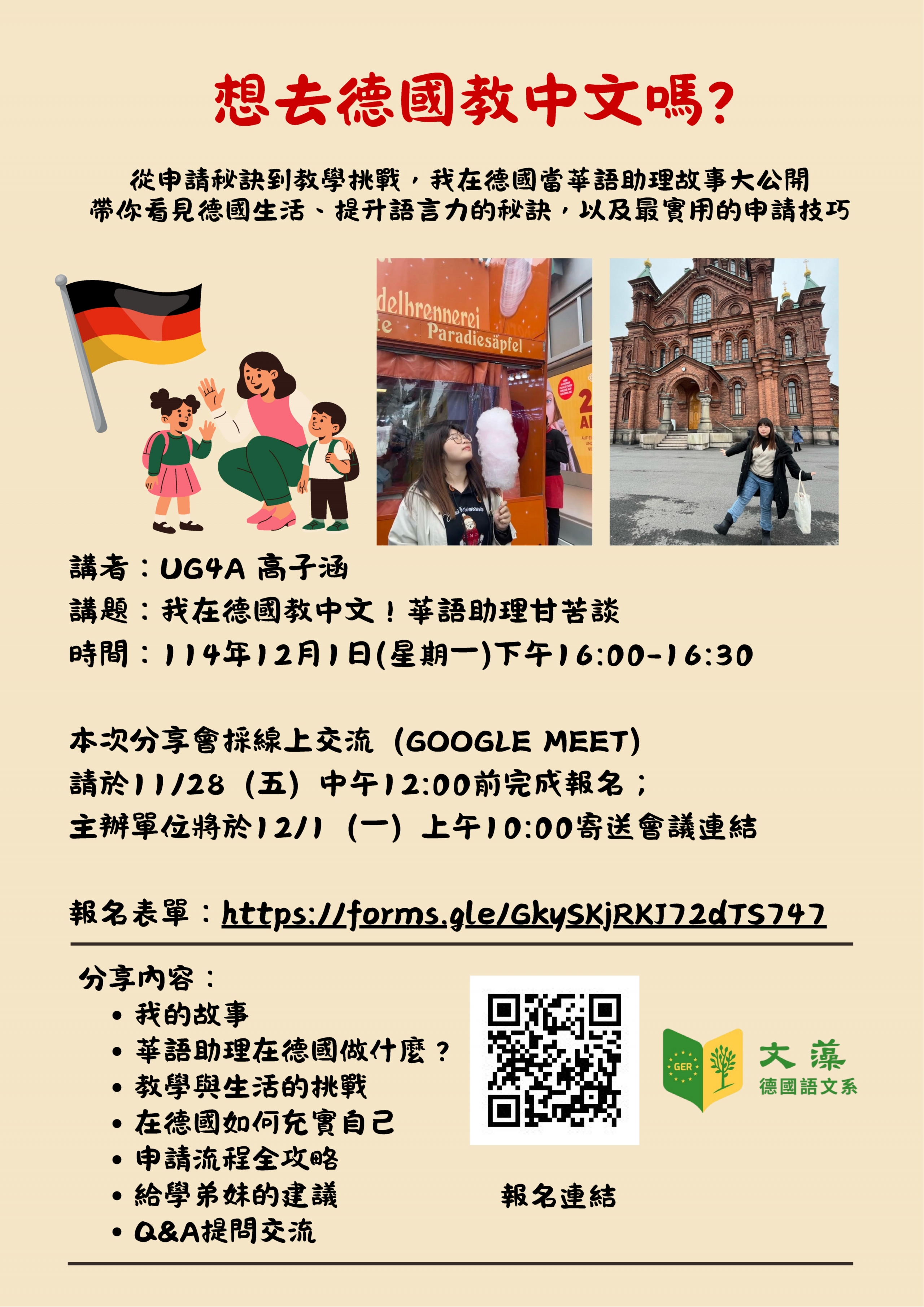 【歡迎參與】114/12/1(一) 「我在德國教中文!華語助理甘苦談」分享會