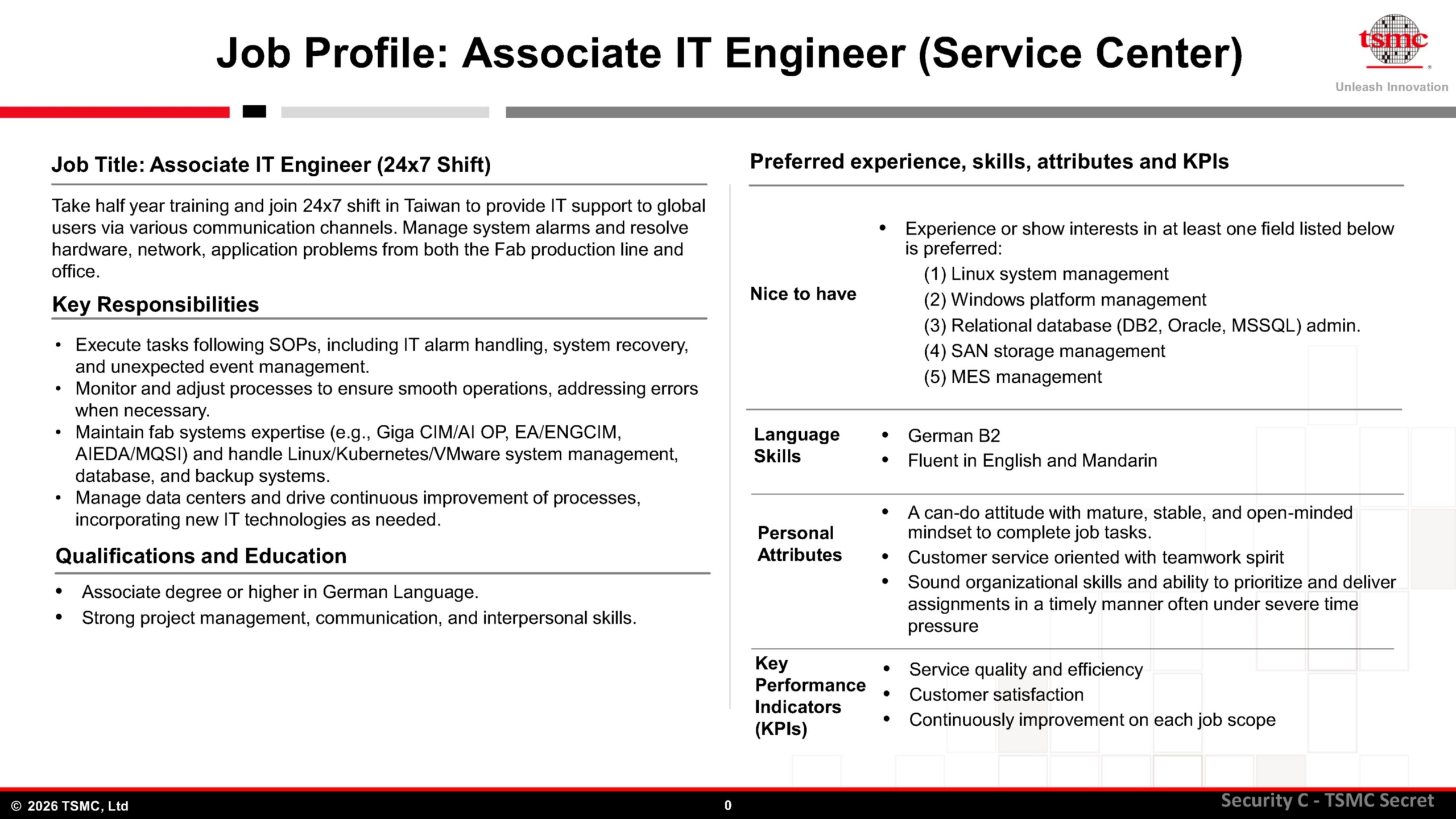 【徵才】台積電--誠徵助理IT工程師(客服中心)