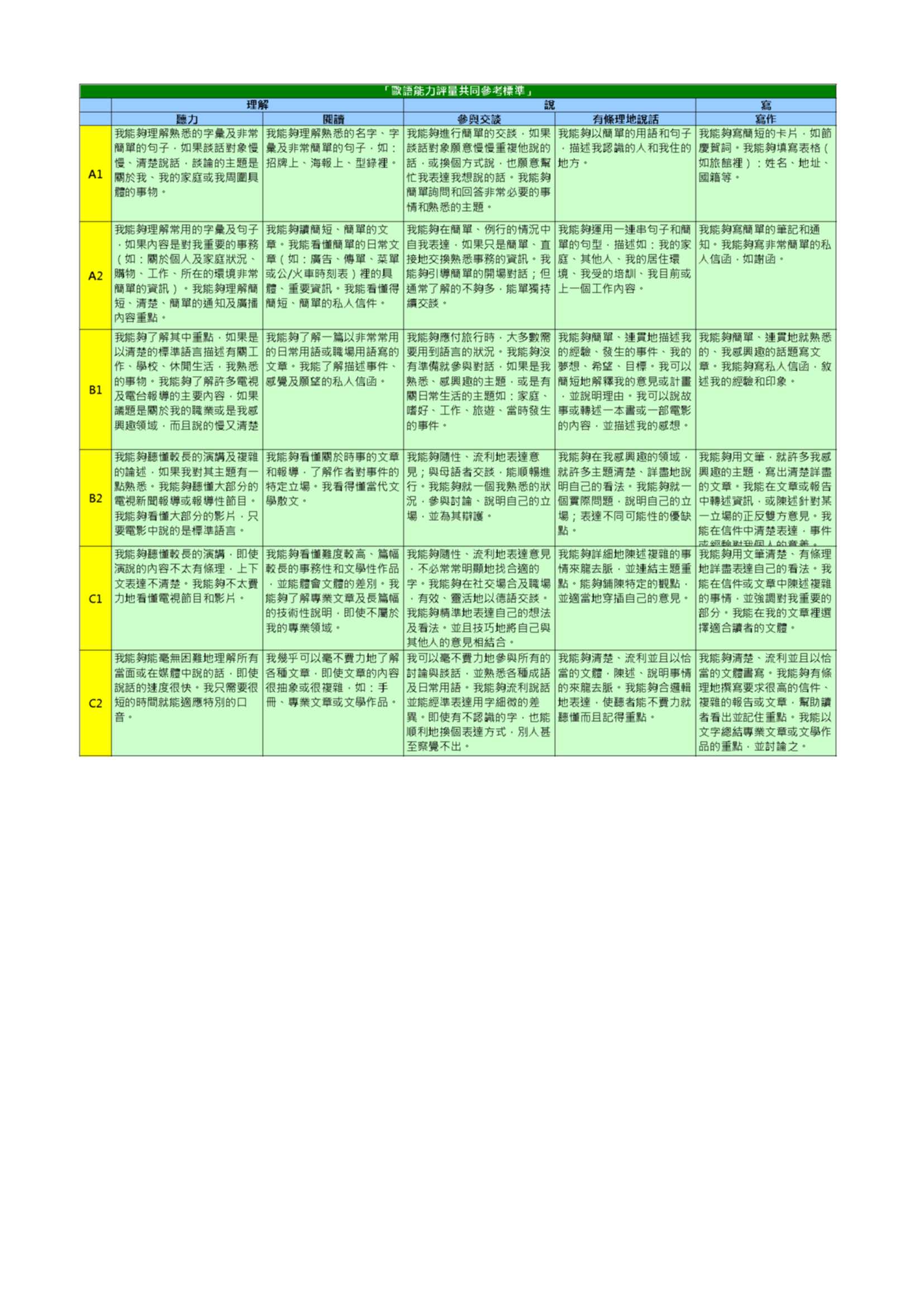 語檢程度對照表 Vergleichstabelle Sprachniveaus